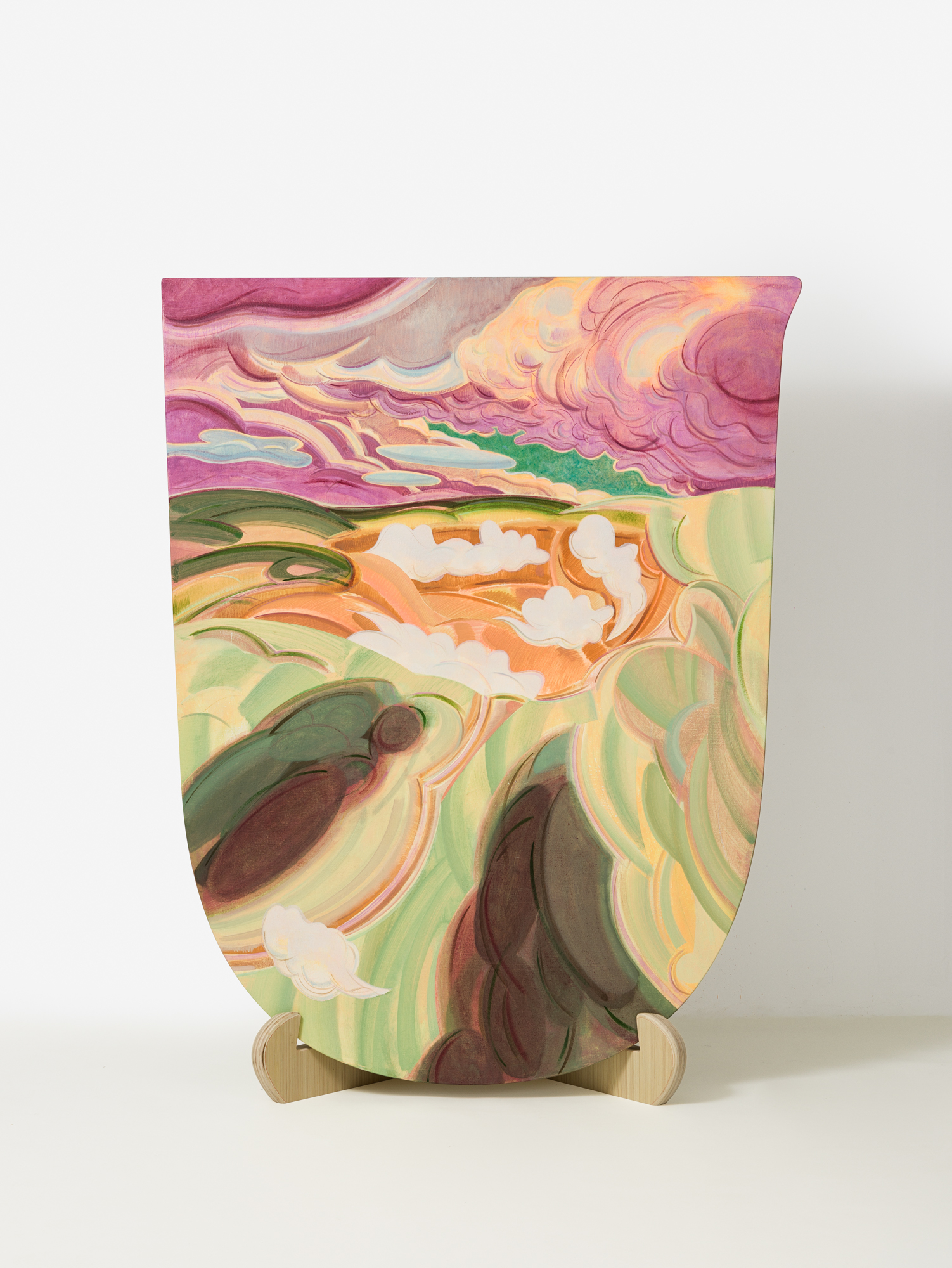 River mouth, 2021,Oil, clam fossil powder, pigments, soil and resin on hand-shaped plywood