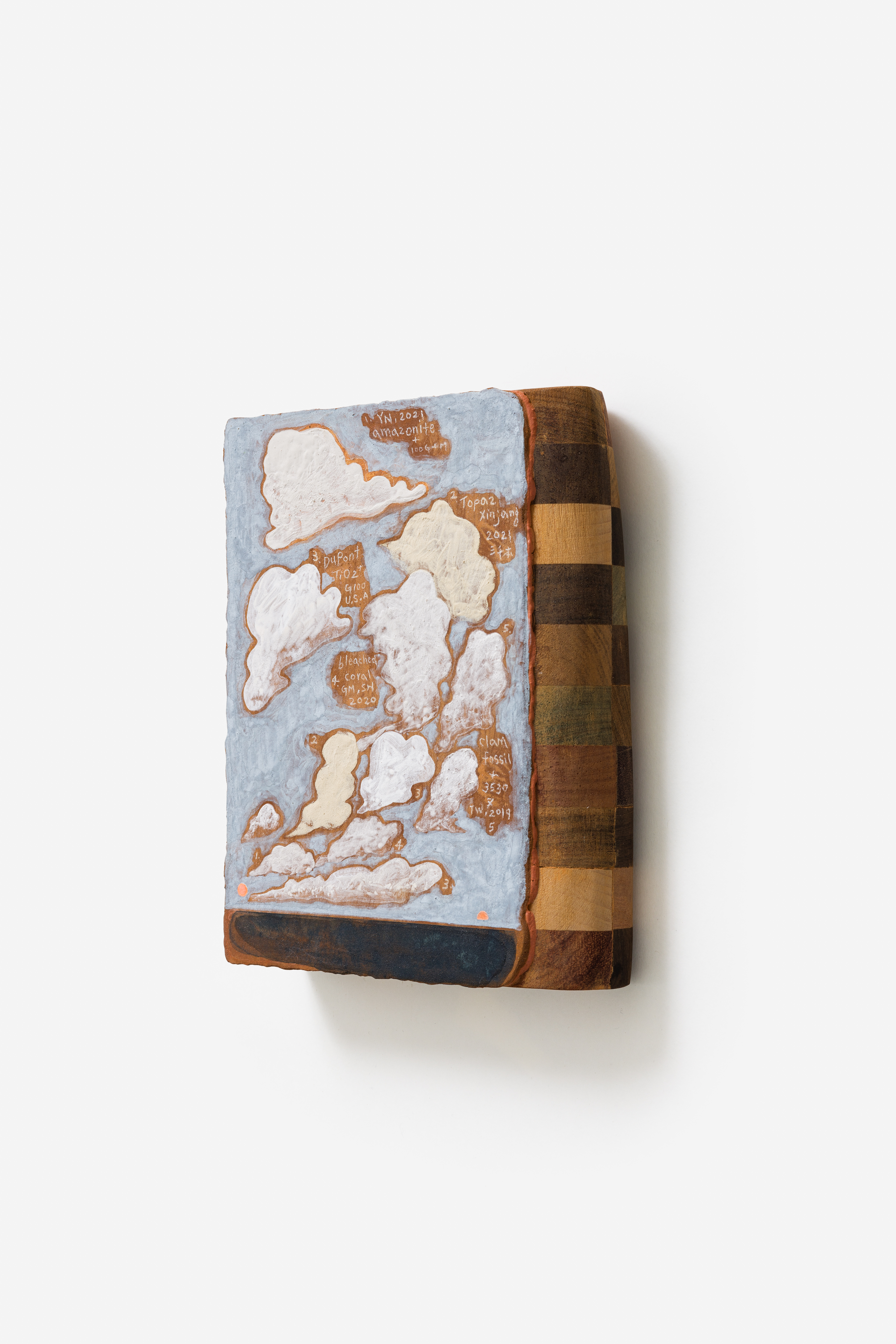 Album, 2020, 16x7x6.2cm, handmade pigment, acrylic paint and gesso on hand-shaped wood